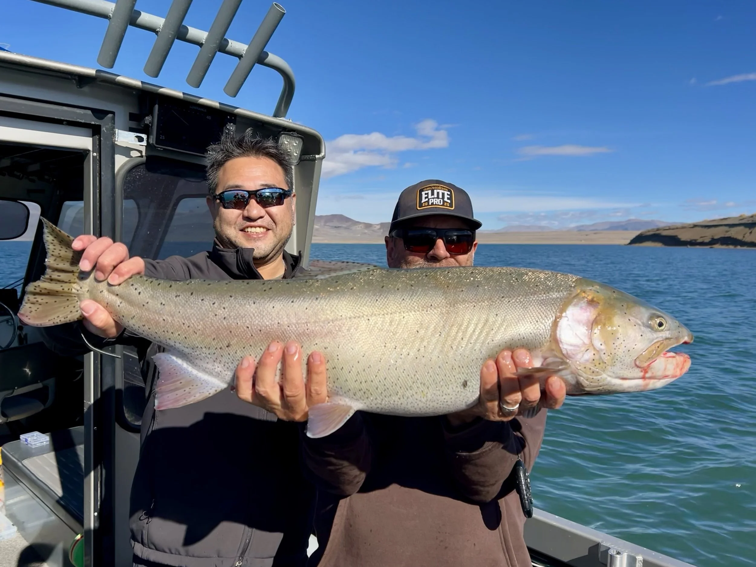 Located just 25 minutes outside Reno, NV, Pyramid Lake may just be the best trout fishery in the country. Lahontan Cutthroat Trout to over 30 pounds have been taken here recently — and on every trip your chances of catching one over 10 pounds are better than just about anywhere. On our guided Pyramid Trips, you’ve got a heck of a shot at hooking the largest trout in your life!