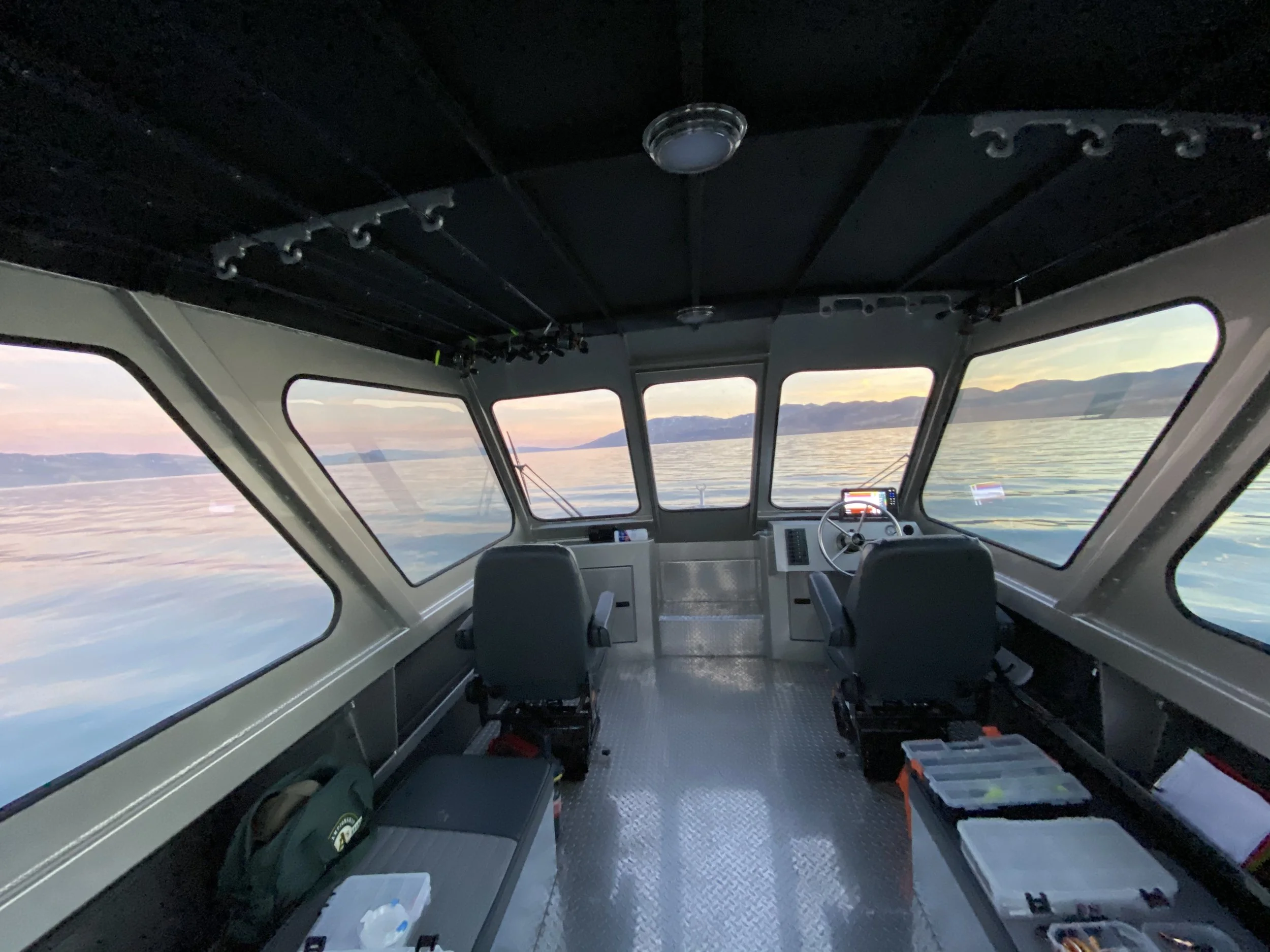 Tour the lake in the comfort of our 26-foot River Wild, which has ample seating for 6, huge windows and open decks up front and in the back for outdoor viewing.